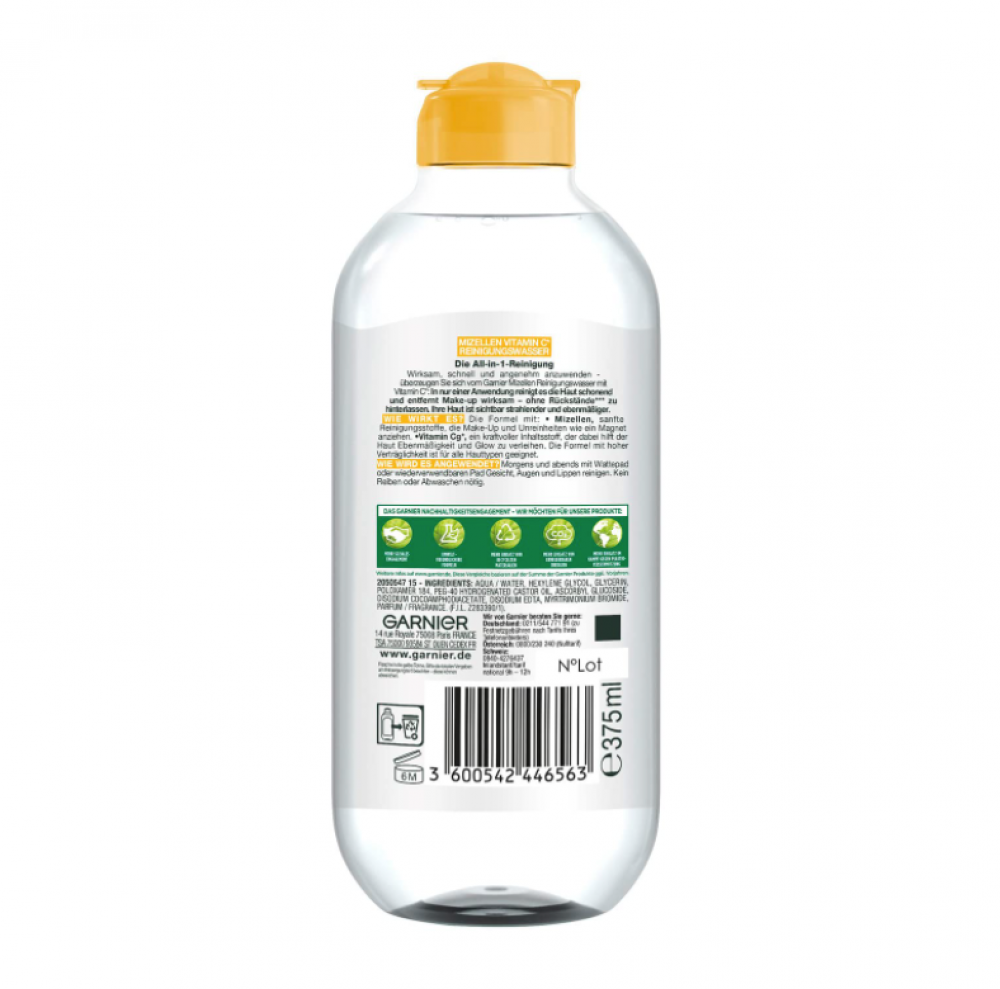 مهما كانت نوع بشرتك، فإن ماء ميسيلار سكين أكتيف من غارنييه مع فيتامين سي هو الحل الشامل للتنظيف وإزالة المكياج ومنحها الانتعاش والنضارة الفائقة. أصبحت العلامة التجارية رقم 1 ميليسار في أمريكا متاحة الآن لتلبية الاحتياجات أثناء التنقل ولجميع أنواع البشرة. لا توجد زيوت أو سيليكون أو كبريتات أو عطور أو بارابين في منظف الوجه ومزيل المكياج هذا.