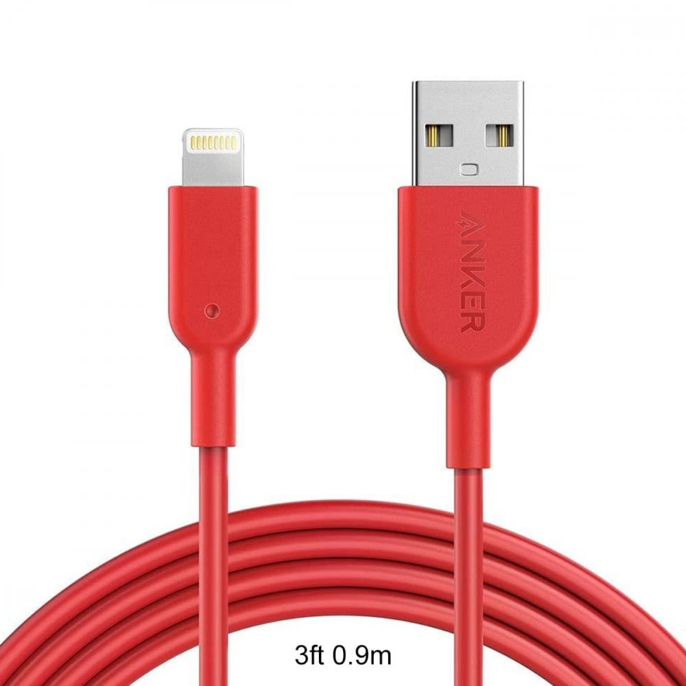 كابل شحن باورلاين ميكرو يو اس بي سريع من انكر احمر - 1m
