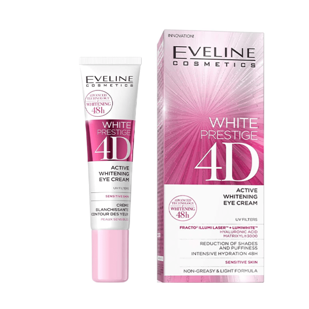 كريم العين وايت برستيج فور دي للتفتيح من إيليفينيعمل هذا الكريم الرائع على تفتيح طبقة الجلد الخارجية وتوحيد درجة لون البشرة ومكافحة التصبغات الشديدة لمدة يصل مفعولها الى 48 ساعة بعد الإستخدام.يتكون من اللوميسكين الذي يؤخر تكوين الميلانين المسبب للتصبغات.يحتوي على حمض الهيالورونيك الذي يختزل الرطوبة في أعماق البشرة حتى يترك البشرة رطبة لأطول مدة والماتريكسيل الذي يعزز من الكولاجين والإيلاستين في البشرة. بتركيبة خفيفة وغير دهنية تمتصها البشرة بسهولة.يمنع التصبغات ويفتح البشرة حول العينين في نفس الوقت. مخصص للبشرة الحساسة.
