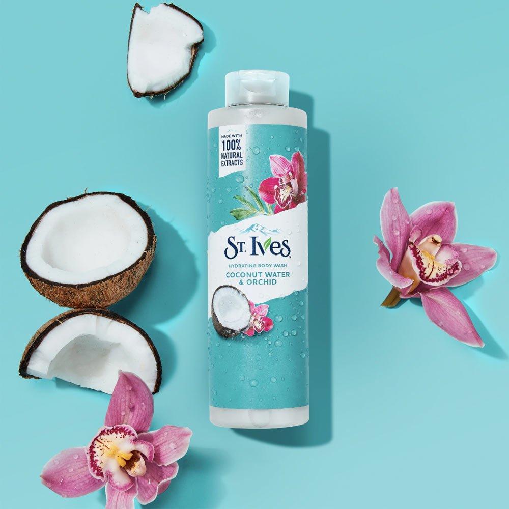 - غسول الجسم بماء جوز الهند الطبيعي 100% ومستخلص الأوركيد الذي يمنحك الترطيب المثالي من سانت ايفز.