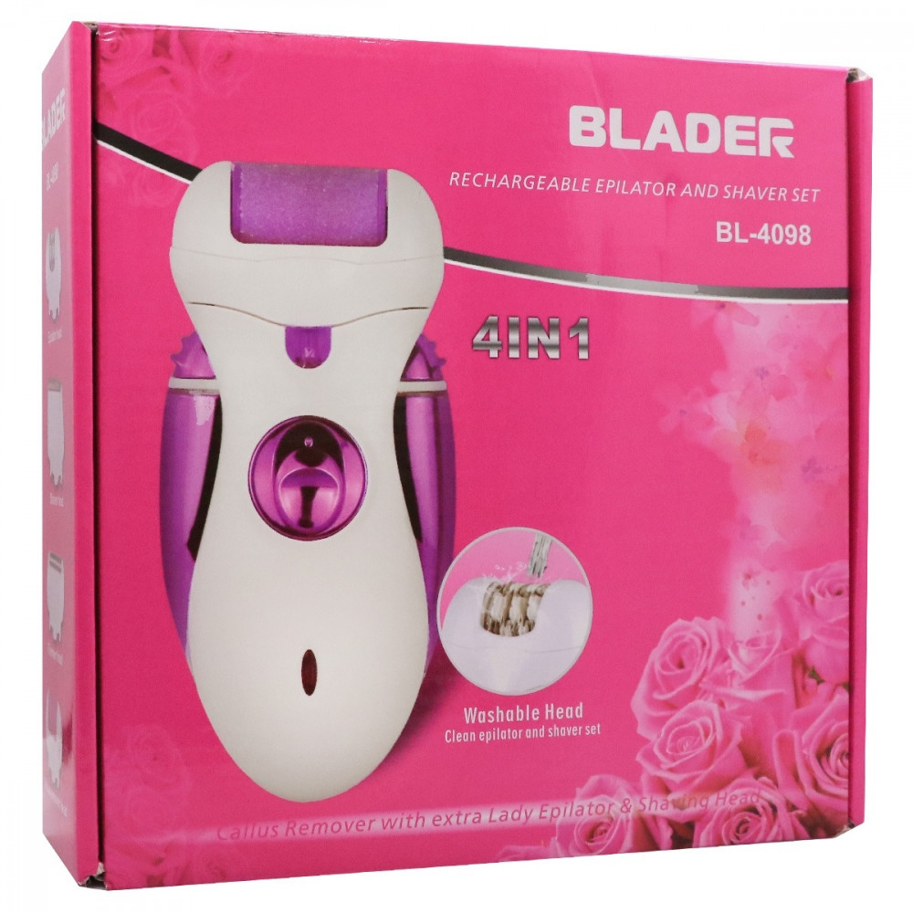 مجموعة ماكينة الحلاقه وبدكير القدم ٤في ١ -بليدر ماكينة 4 في 1 لقص الشعر لاسلكيًه لقص الشعر وإزالة مسامير القدممتعددة الوظائف للنساء محتويات العلبة 1 × جهاز إزالة الشعر الكهربائي. 1× رأس لإزالة مسامير القدم. 1 × رأس لقص الشعر. 1 × رأس تشذيب للحلاقة. 1 × محول طاقة. 1 × فرشاة تنظيف. 1 × دليل الاستخدام. 3 × غطاء شفاف استخدام لاسلكي من أجل راحة أفضل.يزيل الشعر بأمان دون أي جروح أو تشققاتويجعل بشرتك حريرية وناعمة. نظام إزالة الشعر الفعال يزيل الشعر. راس خاص للوجه والجسم.مقبض مريح من أجل التعامل المريح. يزيل الشعر بسلاسة لمنع التهيج. ينعم ويقشر الاقدام والمناطق الجافه